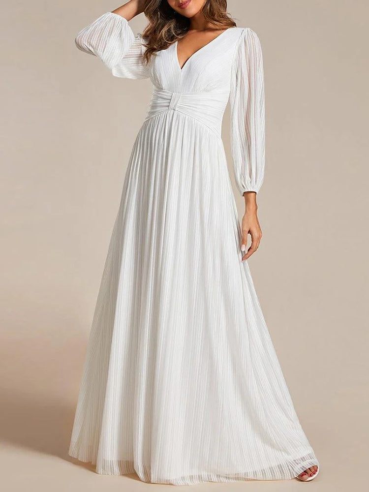 Women's Glittery Empire Waist Long Lantern Sleeves A-Line Evening Dress