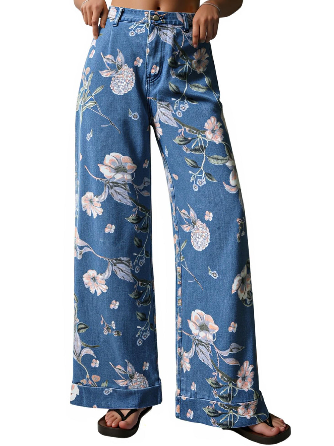 Women's Vintage Boho Floral Baggy Wide Leg Jeans