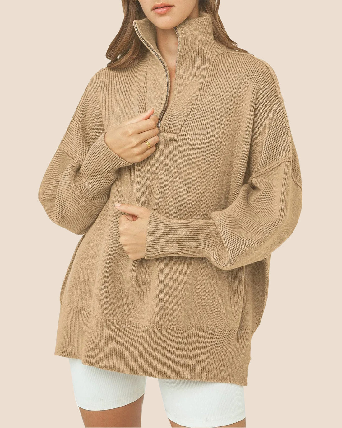 Women's Casual Henley Neck Long Sleeve Knit Button Sweater