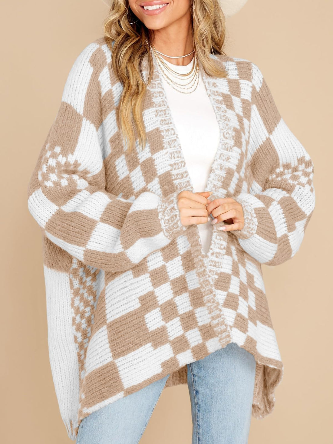 Women's Checkered Sweater Color Block Plaid Cardigans