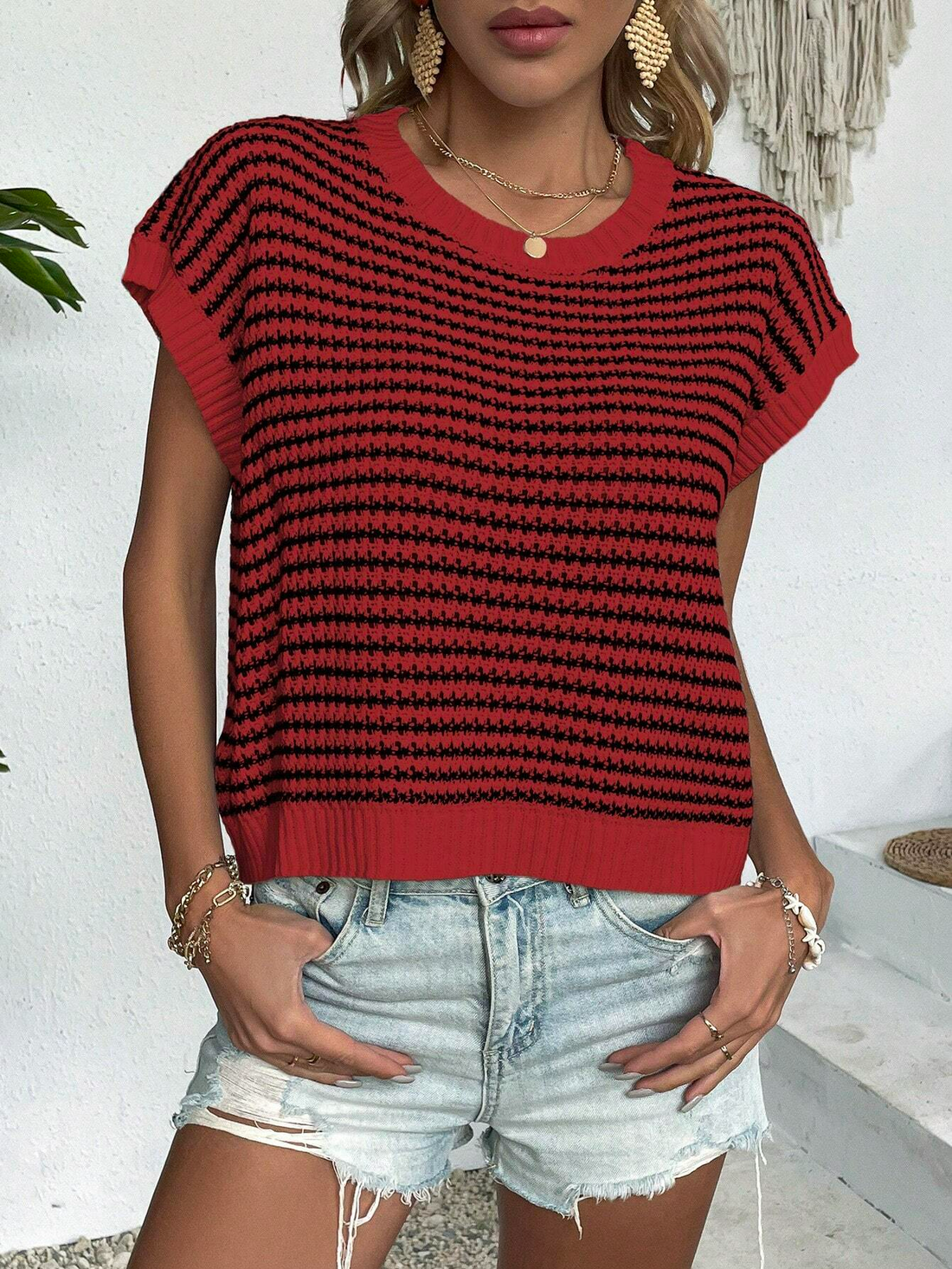 Women's Summer Knit Sweater Striped Vest Cap Sleeve
