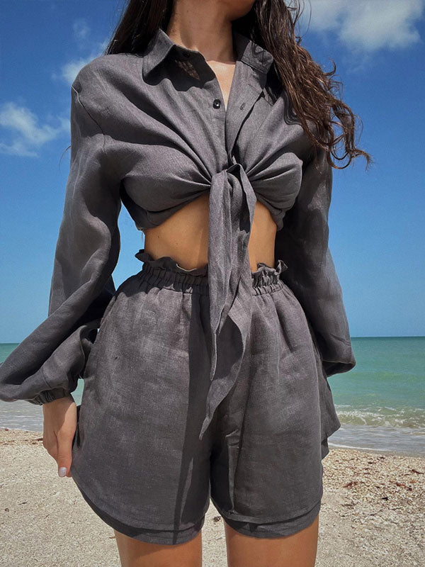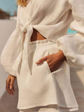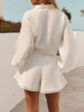 Float into your next sea vacation with this adorable set! Featuring bubbly sleeves and comfy shorts, it's perfect for sunny days and breezy nights. So chic and effortless.
