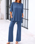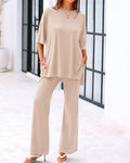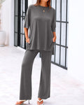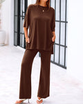 Experience ultimate comfort with this stylish 2-piece set! The loose-fit top with short sleeves offers a relaxed, breathable fit, while the wide-leg pants ensure all-day comfort and movement. Featuring practical side pockets, this outfit is perfect for casual outings or a laid-back day at home. Crafted from soft, lightweight fabric, this set combines comfort and style effortlessly.
