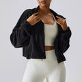 STYLISH STAND COLLAR & CROPPED FIT: The stand collar offers wind-resistant neck coverage with a clean, modern look. Paired with a relaxed cropped silhouette, it visually raises the waistline, creating a longer leg appearance. This flattering cut suits various body types and enables trendy “disappearing bottom” styling with leggings or jeans.