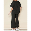 Casual Loose Solid Color Short Sleeve Top and Wide Leg Pants Two-Piece Set