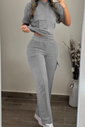 Casual Solid Color Pocket Hooded Short Sleeve Two Pieces