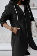 Casual Solid Draw String Zipper Hooded Collar Outerwear
