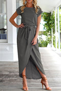 Casual Solid Frenulum O Neck Irregular Dress
