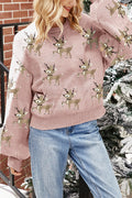 Christmas Deer Loose Round Neck Long Sleeve Knitted Sweater
