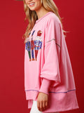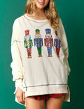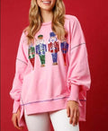 This sequin nutcracker sweatshirt is an absolute SHOW STOPPER! Featuring the most beautiful colorful sequin nutcrackers on an excellent quality bubblegum pink sweatshirt with contrast stitching and split hemline, the fabulous oversized fit is the icing on the cake!