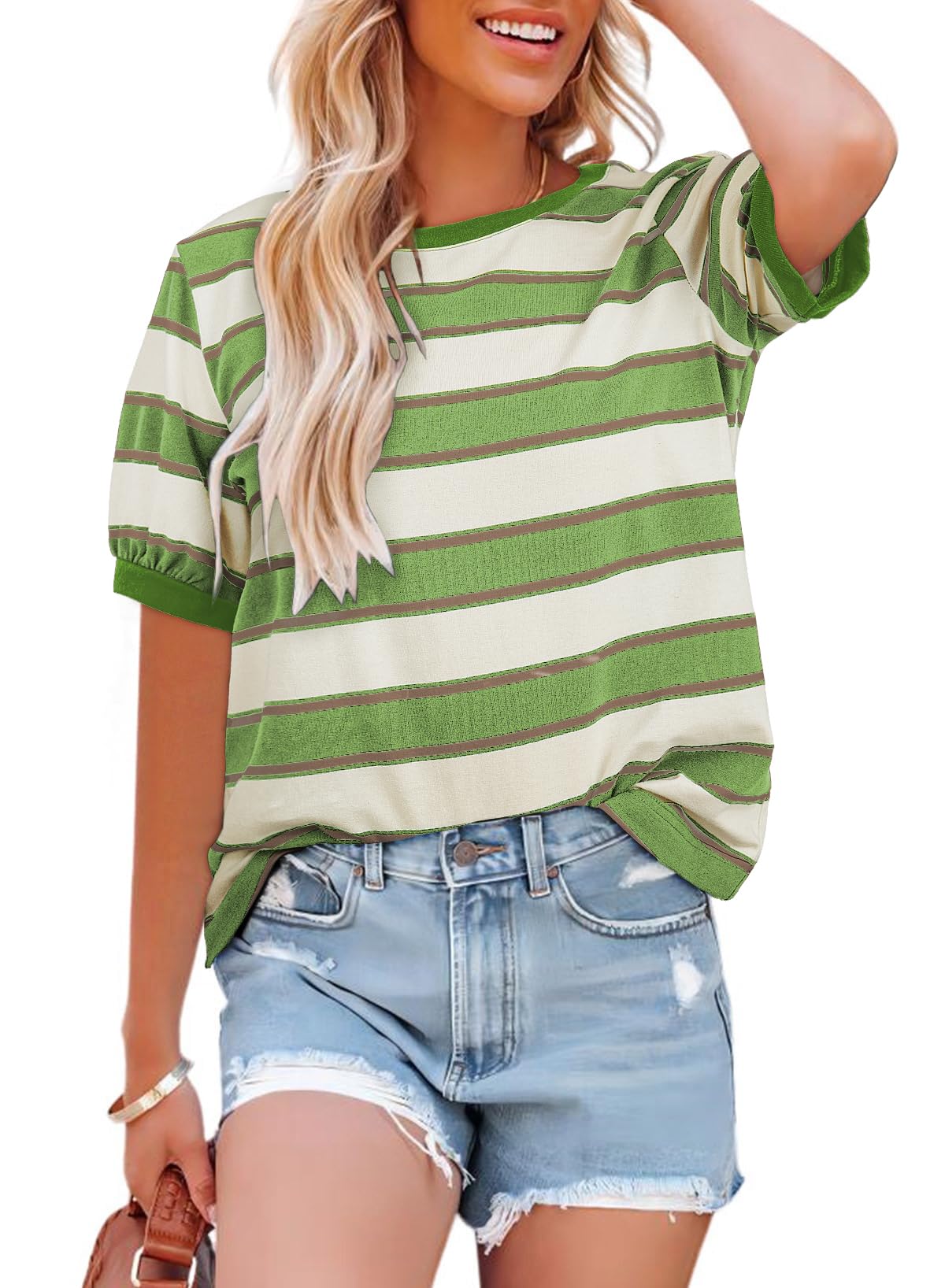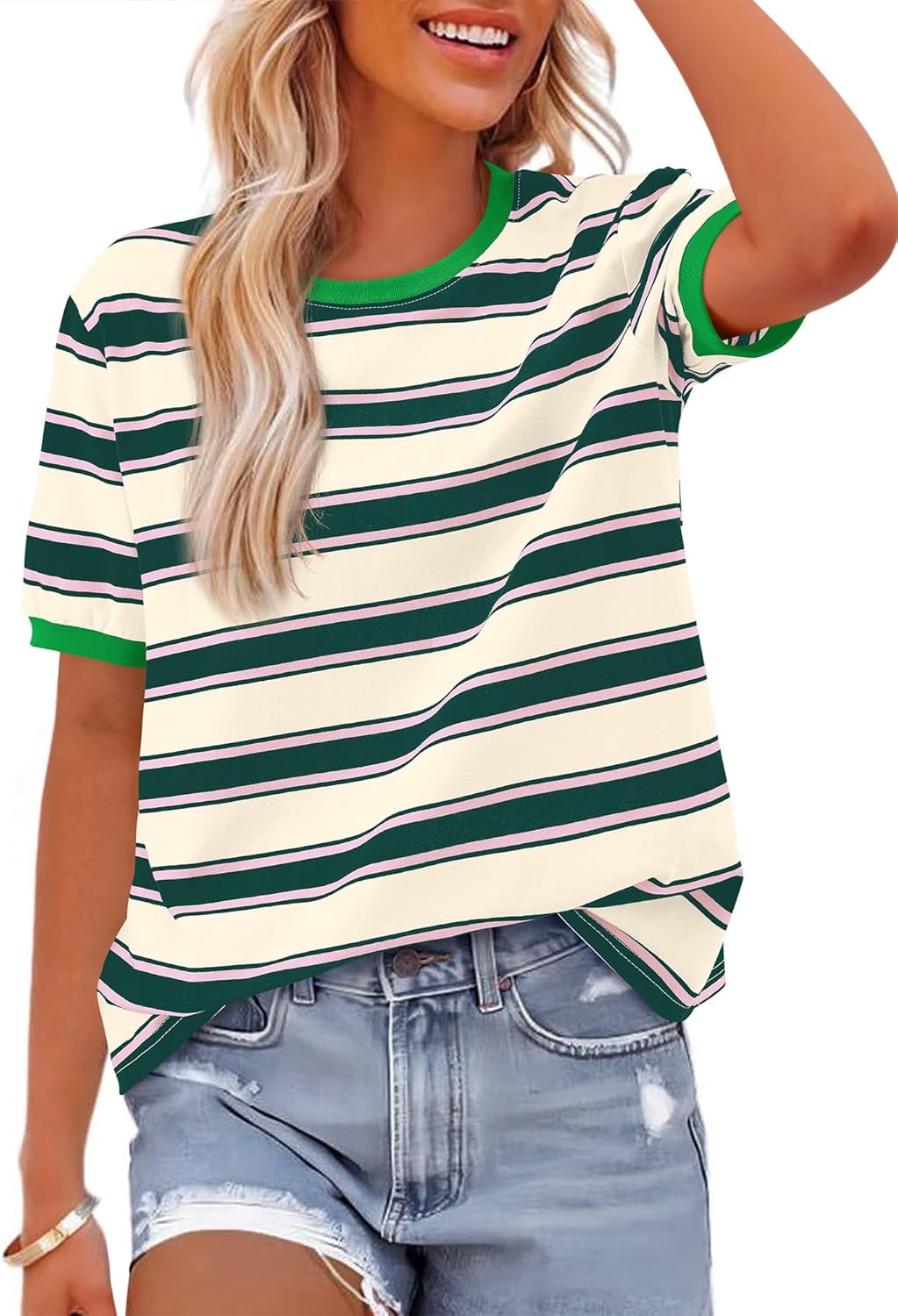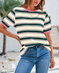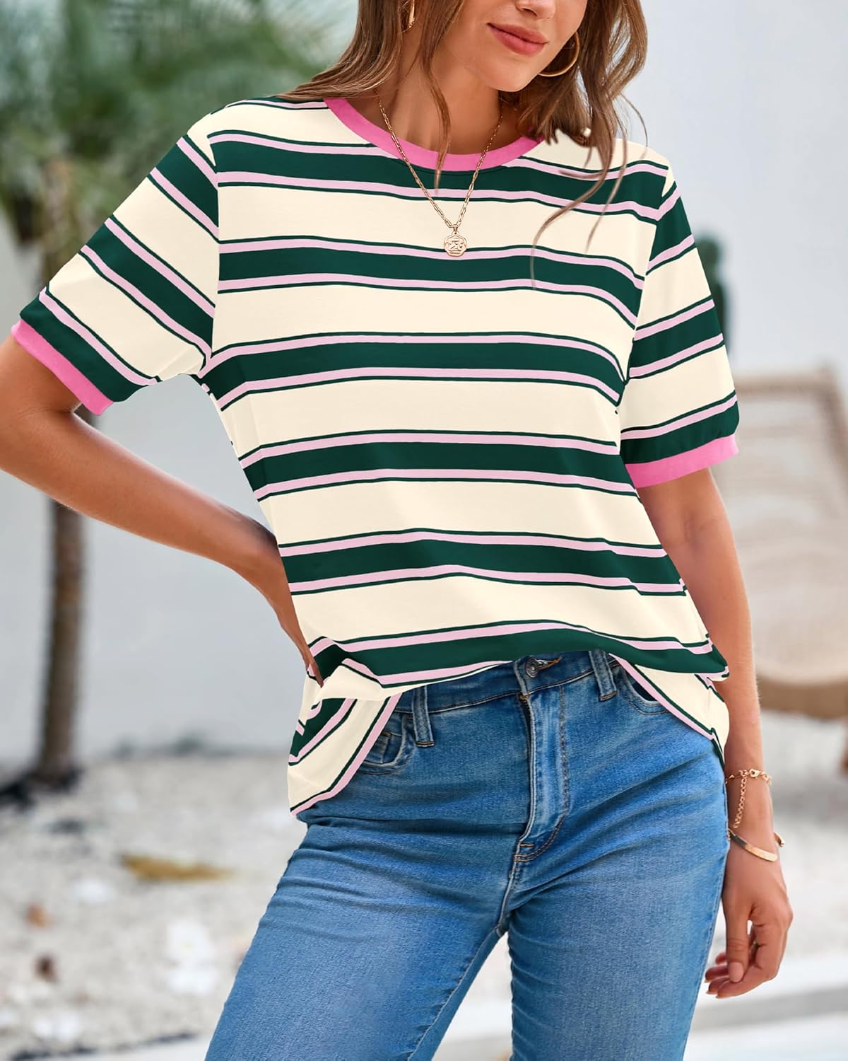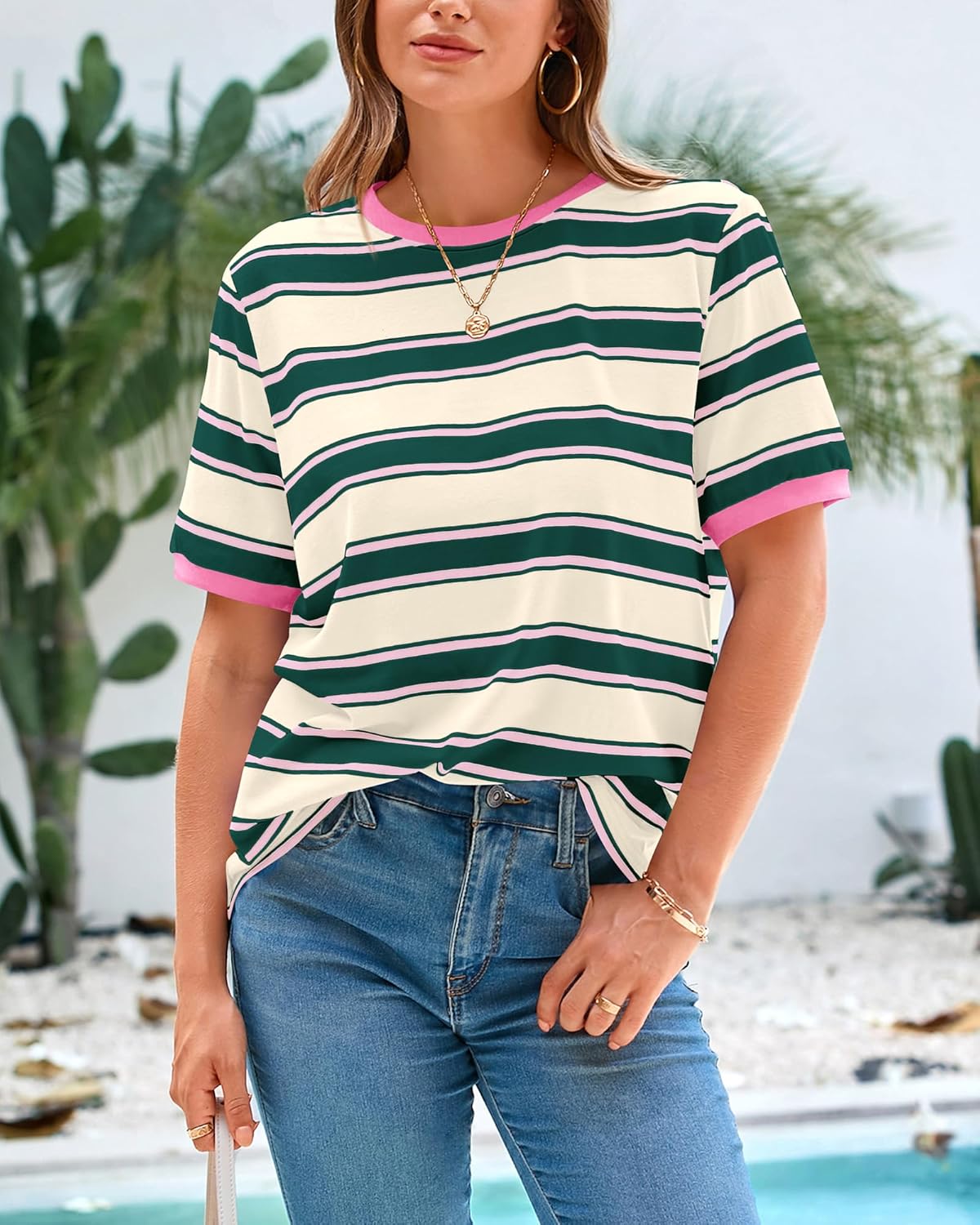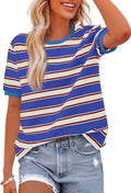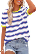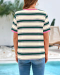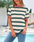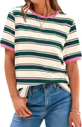 Color Block Crewneck Striped Short Sleeve T Shirts