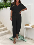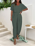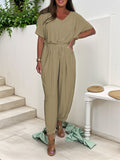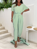 Cotton V-Neck Jumpsuit with Tie