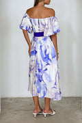 Elegant Floral Print Lace Up Off Shoulder A Line Dresses