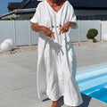 Elegant V-Neck Short Sleeve Side Slit Dress