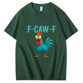 This shirt highlights a wide-eyed blue rooster in full cry, paired with the quirky phrase “F-Caw-F.” Roosters have long been symbols of vigilance and awakening, reminding communities across history to rise against challenges while poking fun at life’s daily absurdities.