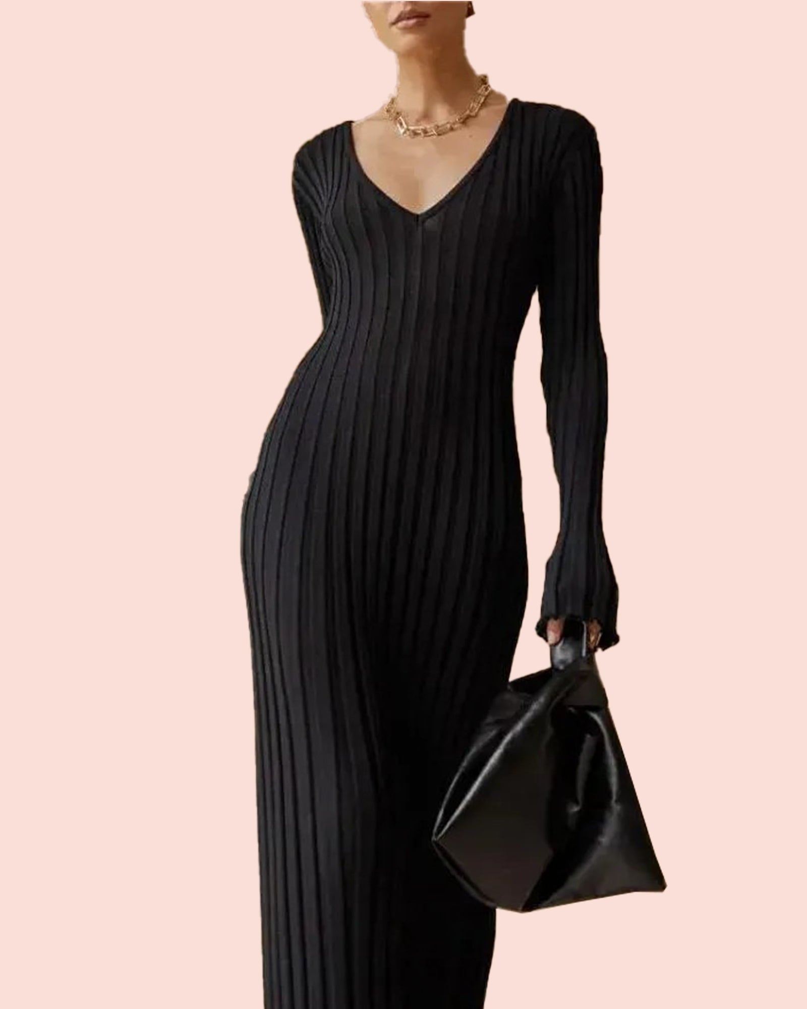 Fall New Sleeved Knit Midi Dress is designed to provide a flattering fit with its ribbed knit construction and a-line silhouette. Constructed from a soft and stretchy fabric, this dress is ideal for everyday wear. The ribbed fabric creates a slim and stylish shape, perfect for all kinds of occasions.