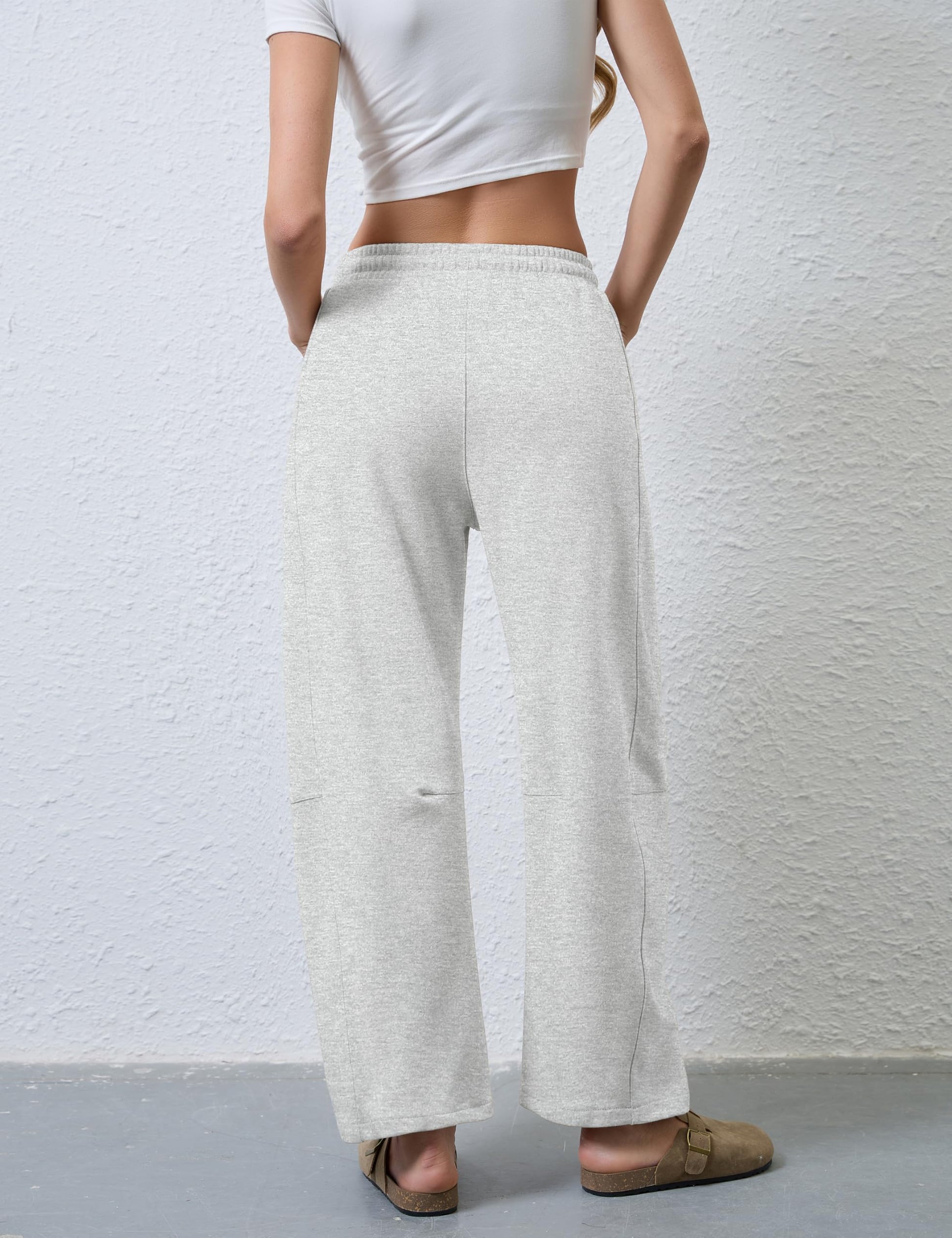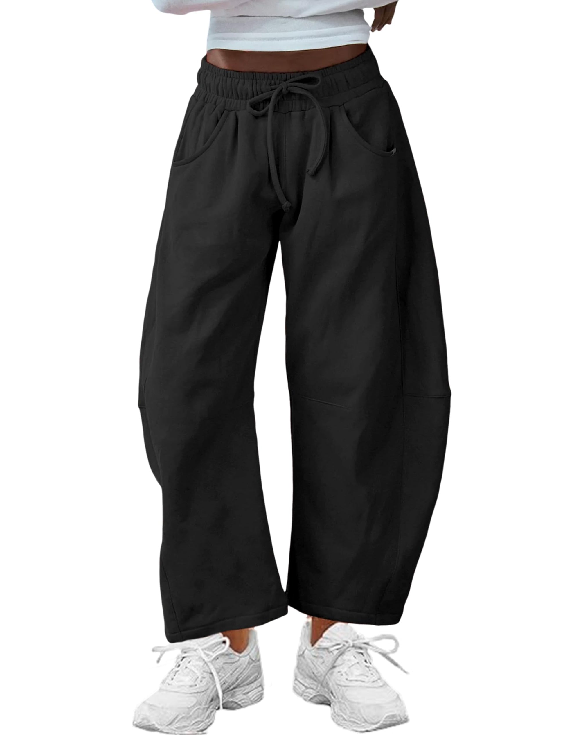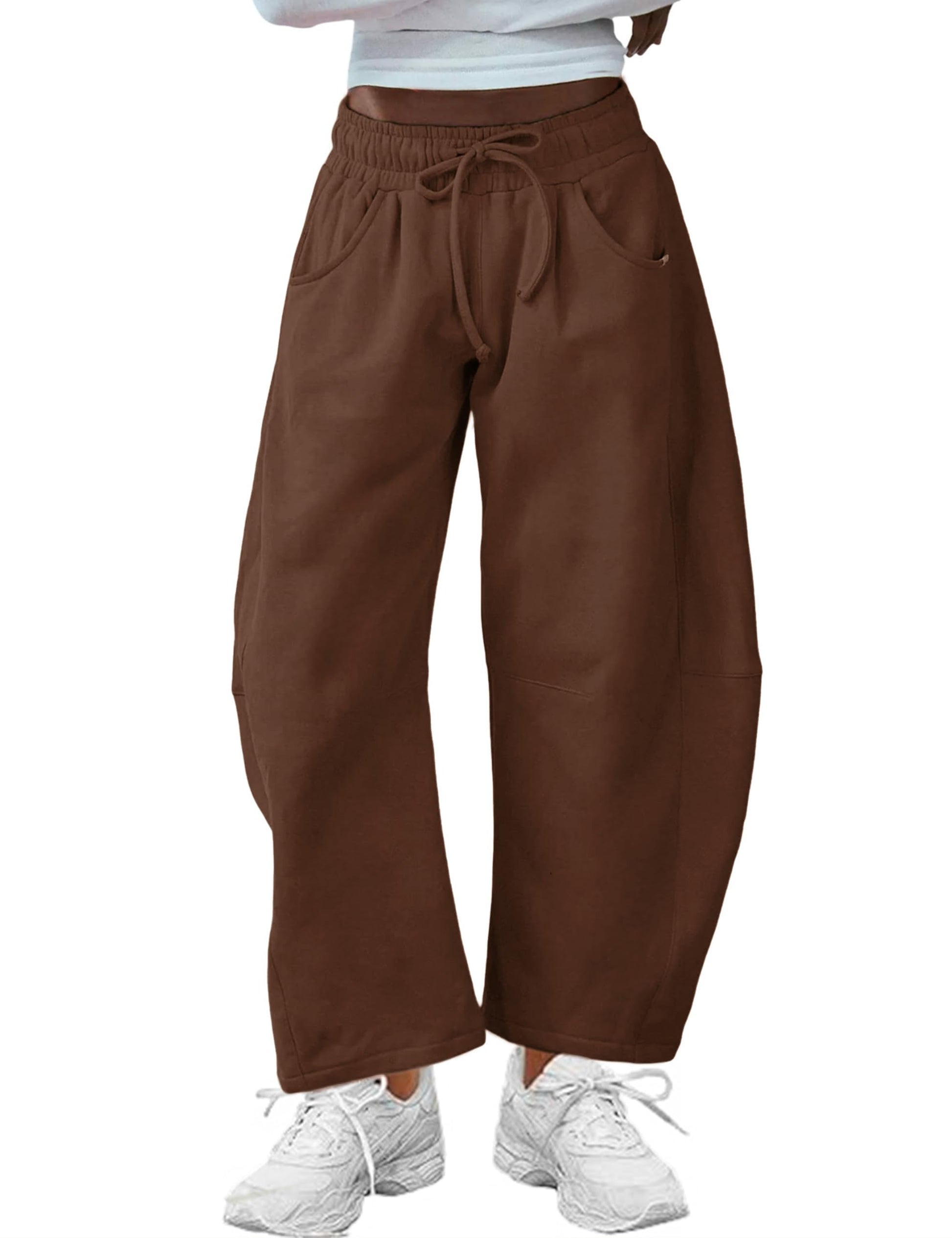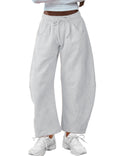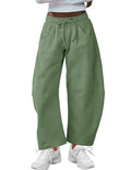 Fall Women's Barrel Leg Elasticated Waistband Soft Wide Leg Pants with Pockets