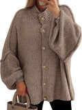 Fall Women's Winter Button Down Cardigan Sweaters Mock Neck Lantern Long Sleeve