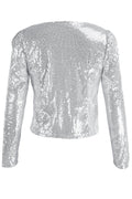 Fashion Solid Sequins Patchwork O Neck Outerwear