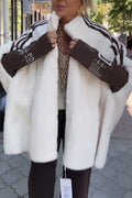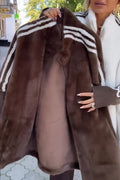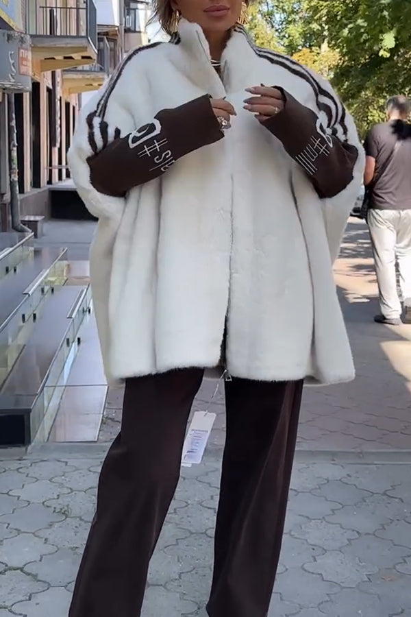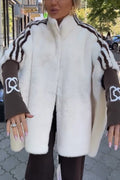 Fashion Sports Stripe Print and Ribbed Embroidered Long Sleeve Zipper Stand Nack Pocket Plush Coat