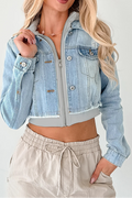 Fashionable Patchwork Hooded Casual Long-sleeved Denim Jacket