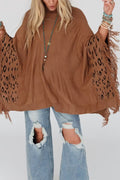 Fashionable Round Neck Tassel Loose Knitted Sweater