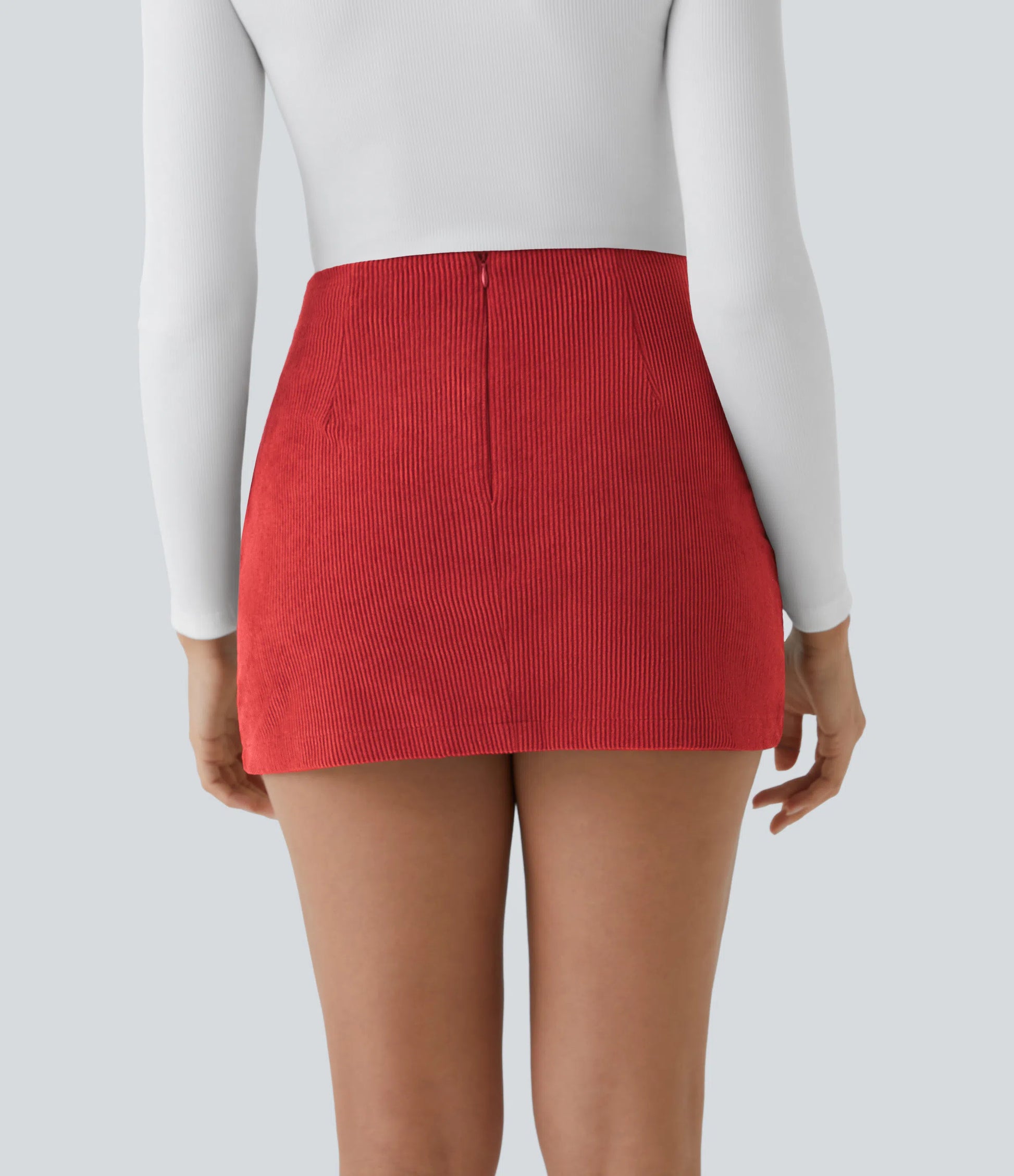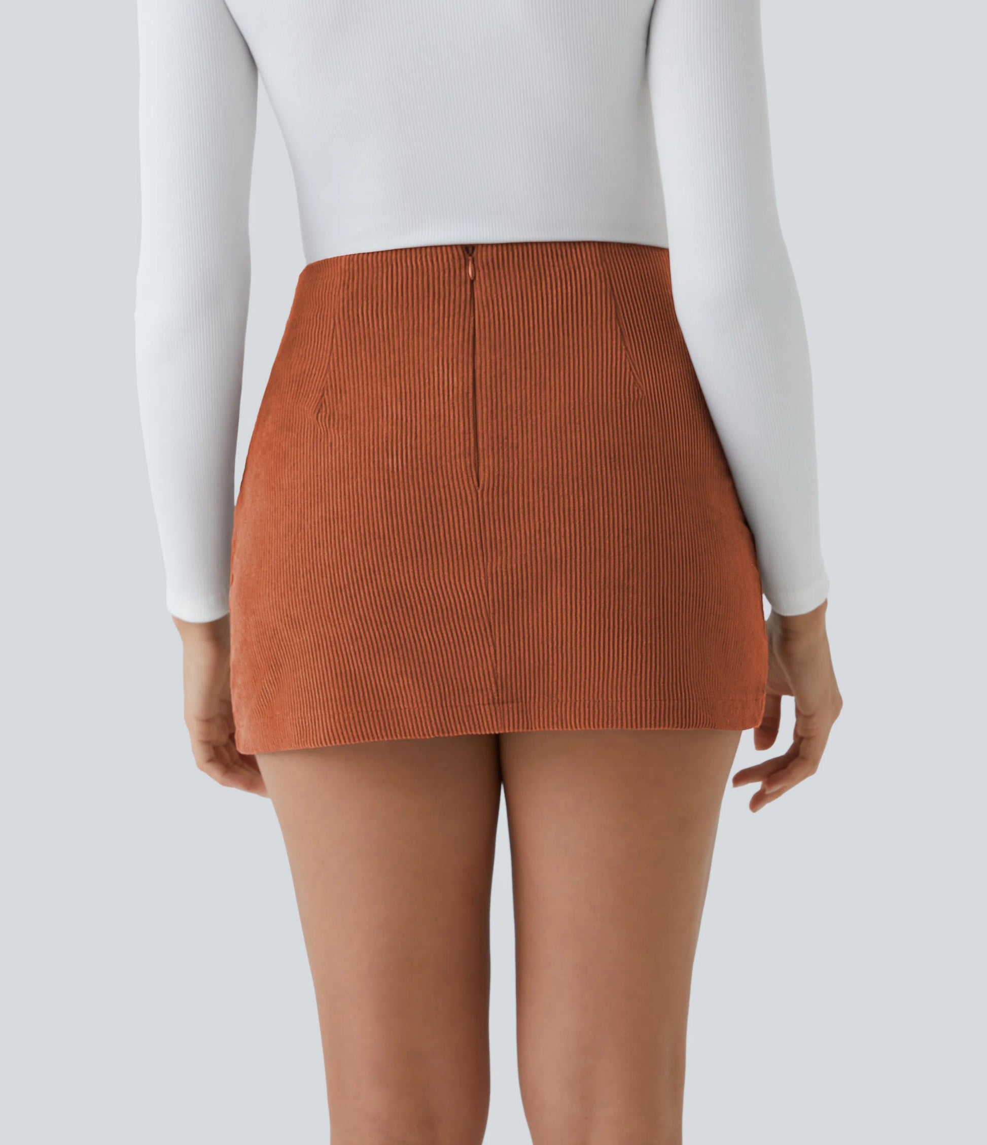 High Waisted Invisible Zipper 2-in-1 A Line Corduroy Casual Skirt