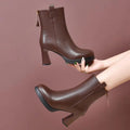 Women’s retro pointed-toe casual boots with chunky high heels, a pair of boots that have taste, style, and comfort! Nice gift for your loved one, family, and friends!