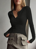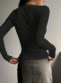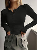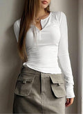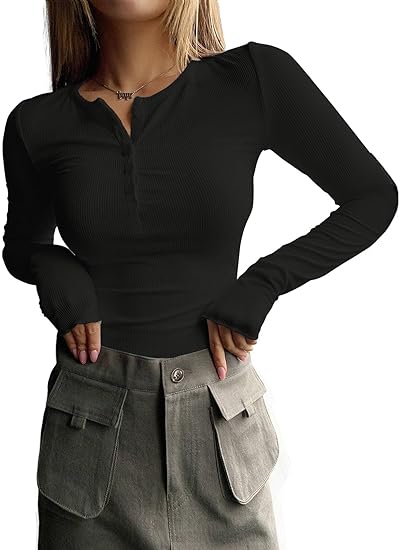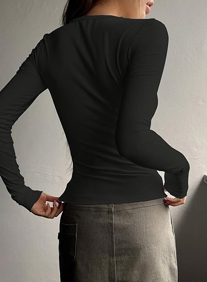 Long Sleeve Shirts for Women V Neck Henley Tops Slim Fit Basic Ribbed Knit Button Down T Shirts Y2K Tops