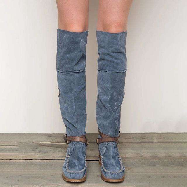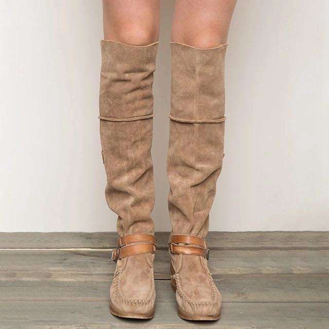 Low Heel - Over The Knee Tassel Boots