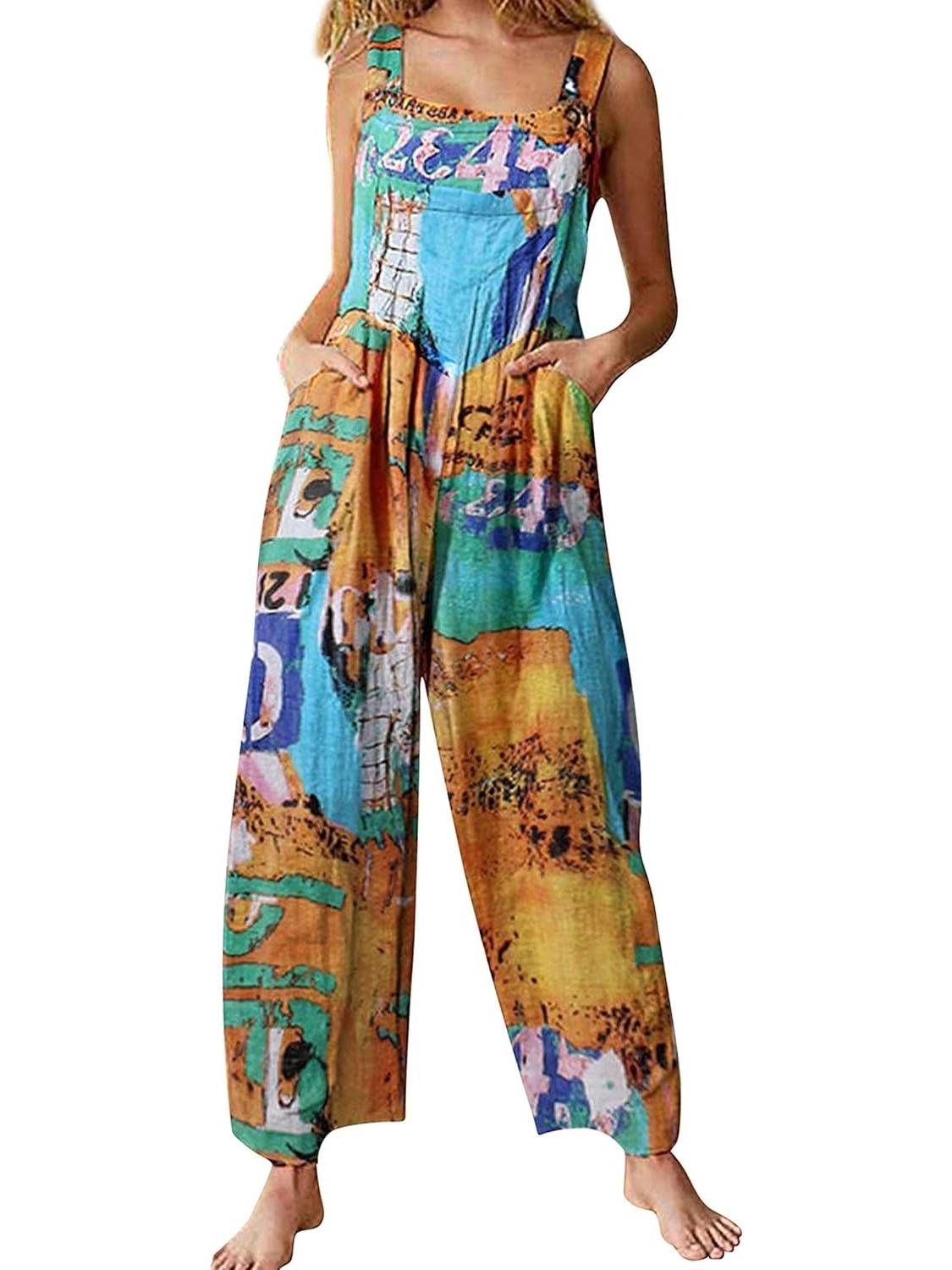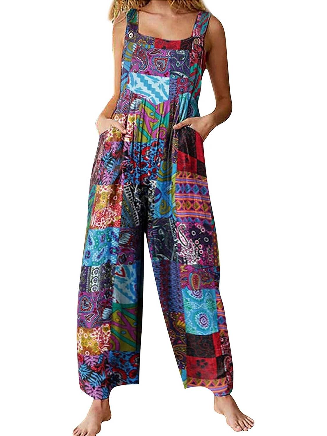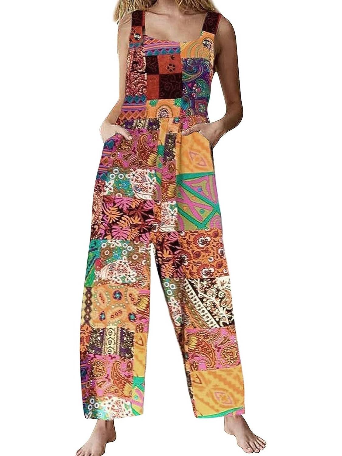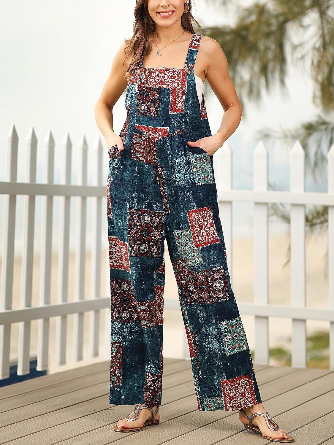 Overalls For Women Floral Boho Loose Fit Summer Wide Leg Jumpsuits