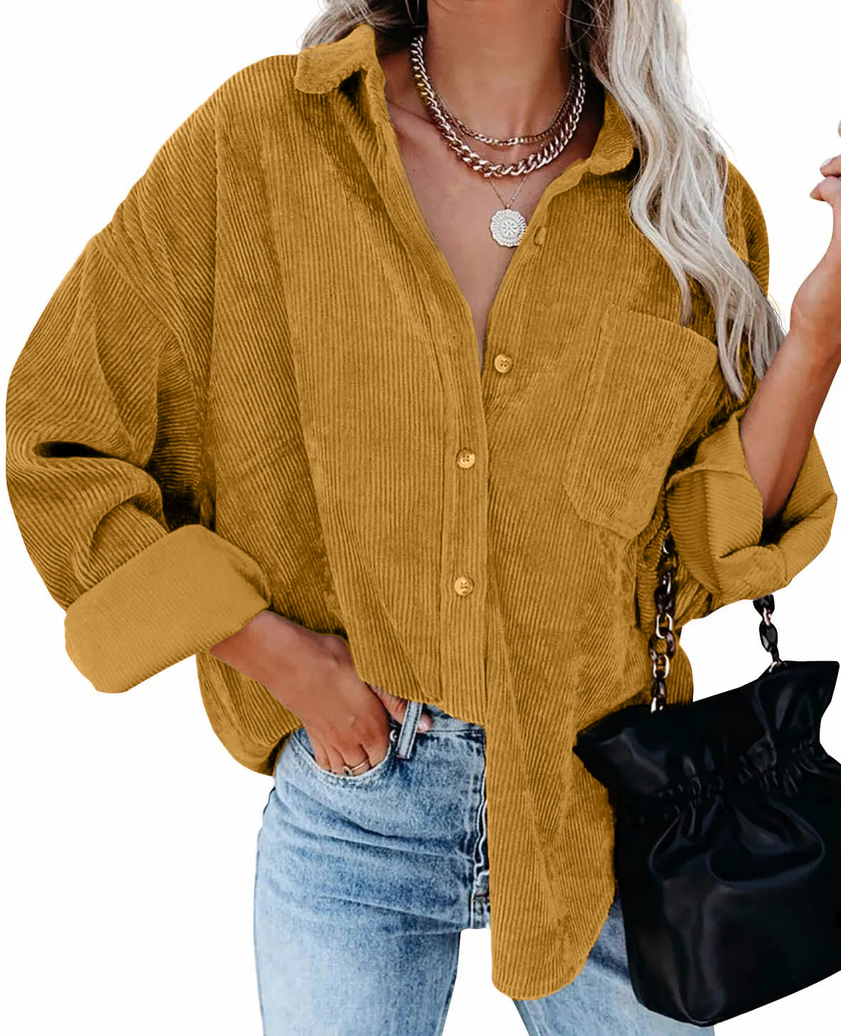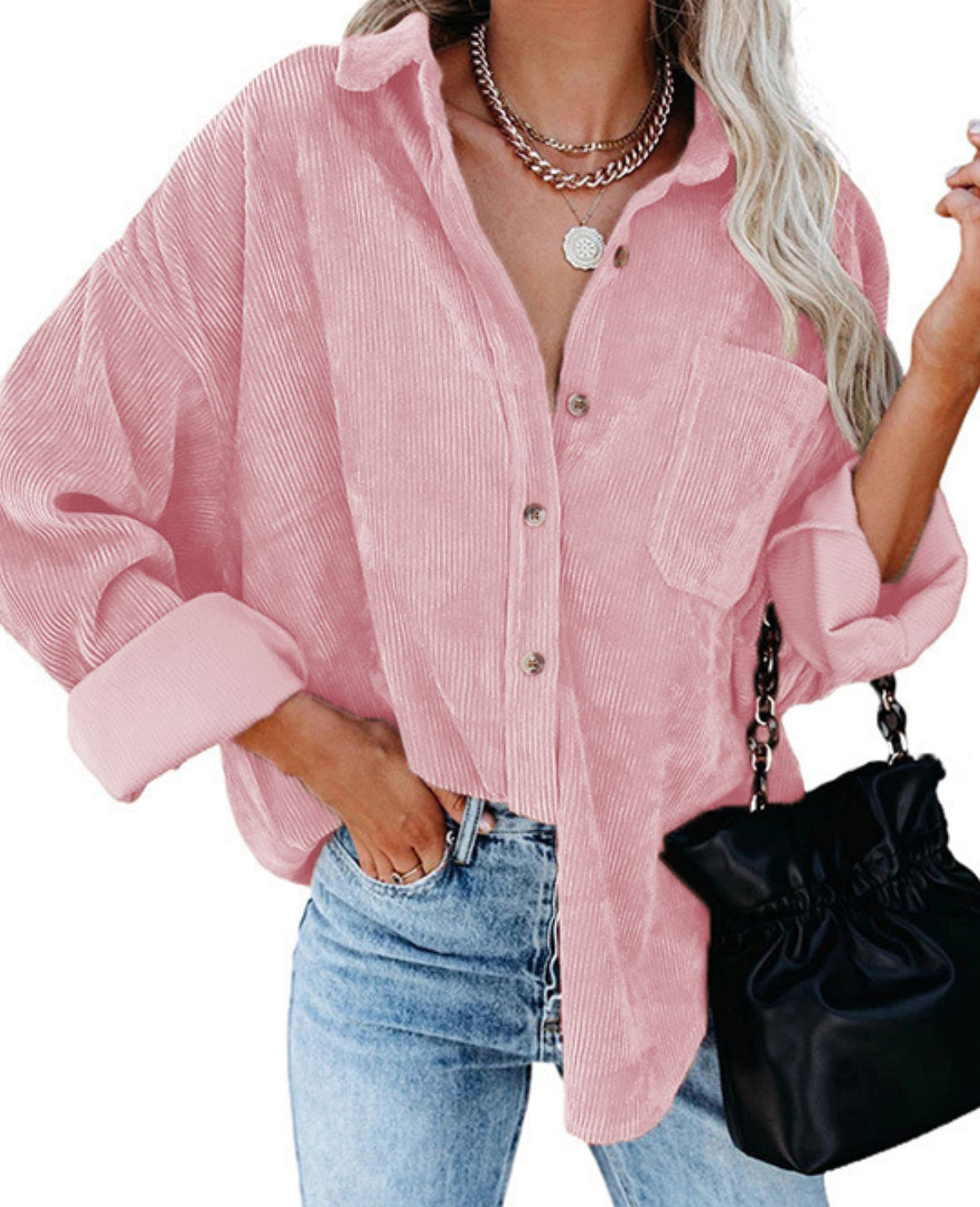 Designed in lapel V neck and long sleeve, the women fall shirt provide a versatile and classical Look. Elements of pocket and Buttons keep the practicality of functions.The material is made of very soft, high-quality corduroy, which is a thick, wear-resistant corduroy fabric with good warmth, with gives you a comfortable and soft feeling, and does not itch!