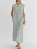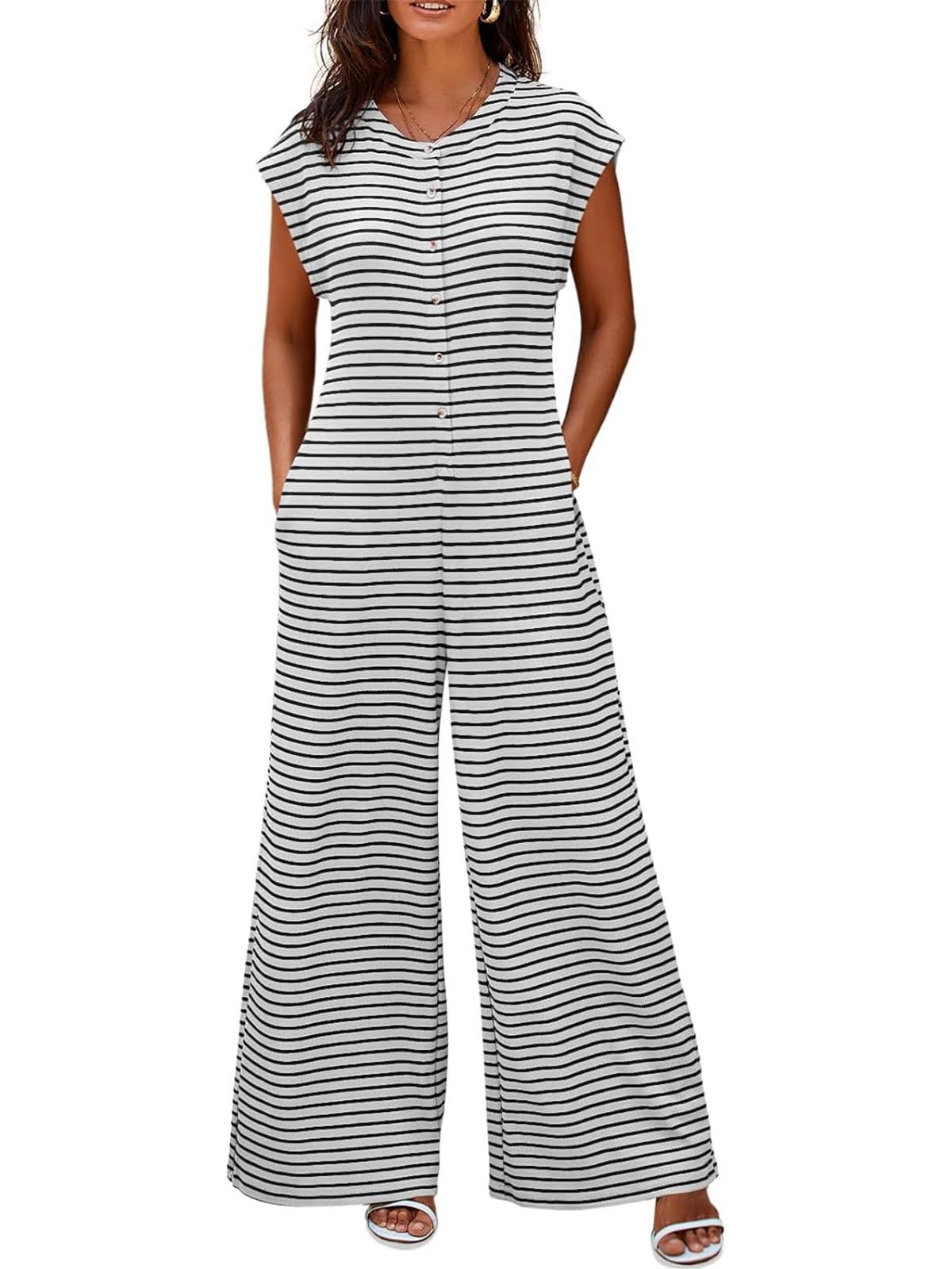 Unleash your style with this Oversized Striped Sleeveless Jumpsuit! Featuring an oversized stripe print and irresistible button detail at the front, it's the perfect blend of comfort and fashion.