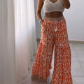 Package Includes: 1* Printed High-Waisted Wide Leg Pants with Pockets