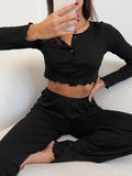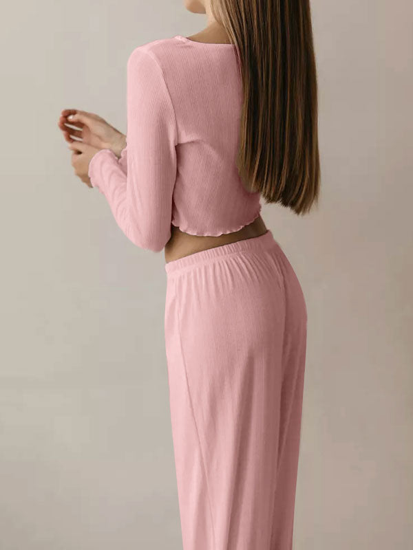A calm-day favorite, this set pairs a stretchy, close-fitting rib texture with easy shapes that move with you. Ideal for winding down after work or enjoying a slow weekend indoors.
