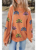Sequin Turkey Patch Thanksgiving Corduroy Sweatshirt