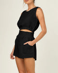 Sleeveless Round Neck Crop 2 Piece Outfits