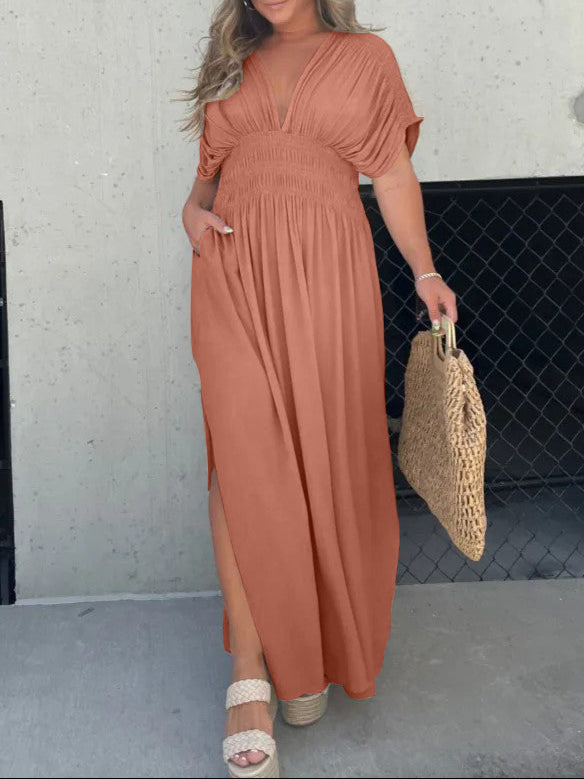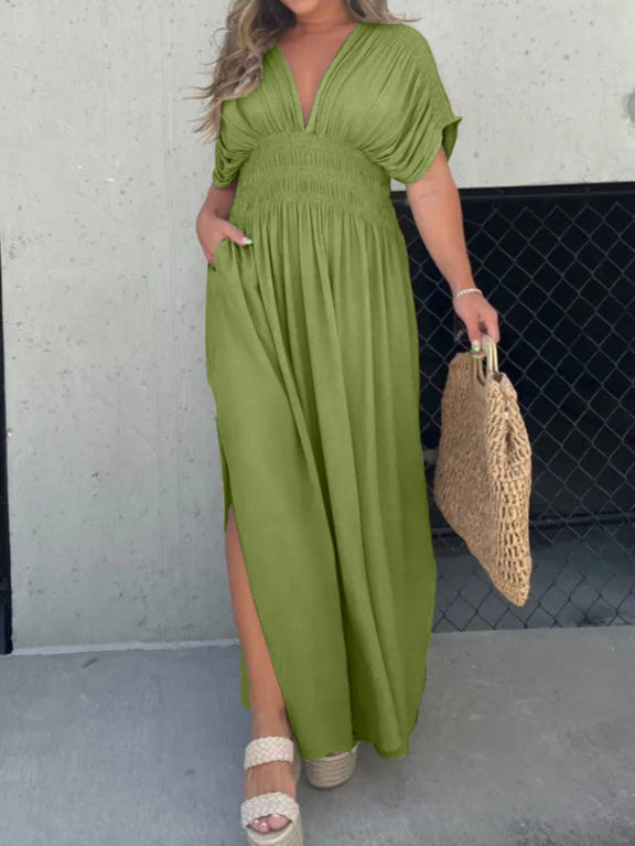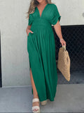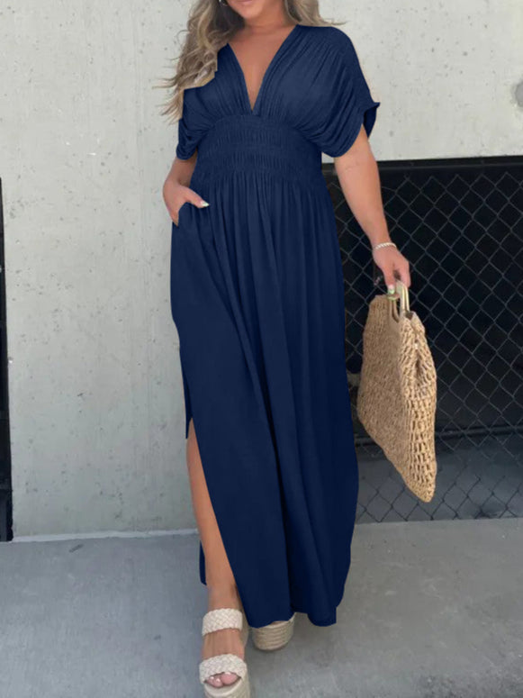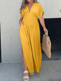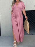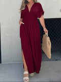 Slit V-Neck Effortless Maxi Long Dress