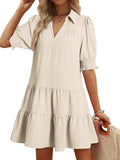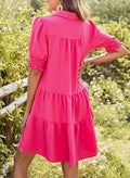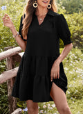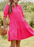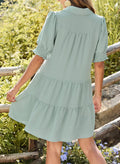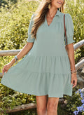 Smocked Sleeve Tiered V-Neck Mini Dress