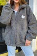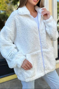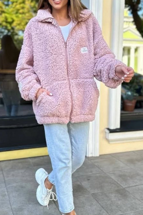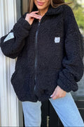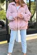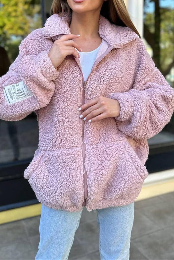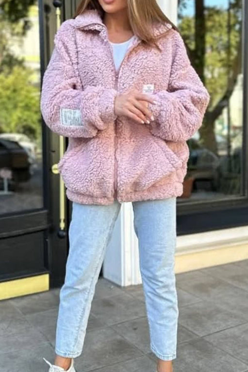 Solid Color Casual Long Sleeve Zipper Pocket Loose Jacket