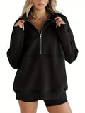 Solid Color Half-Zip Pullover Sweatshirt
