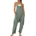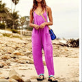 Solid V-Neck Sling Pocket Jumpsuit