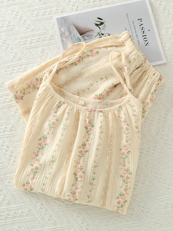 An easy favorite for summer, this pajama set comes in a loose fit with soft texture and sweet floral print—perfect for slow mornings, open windows, and the calm of a quiet weekend at home.