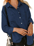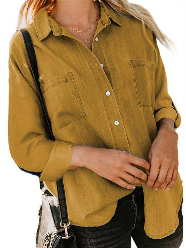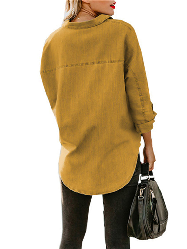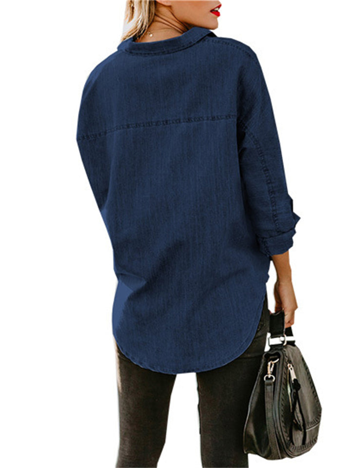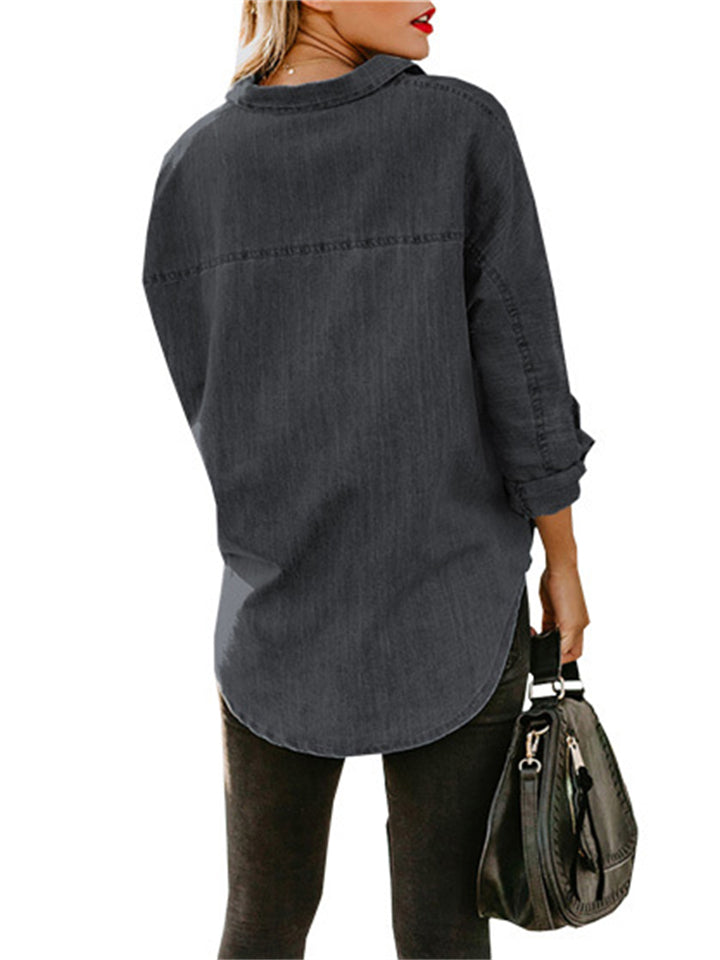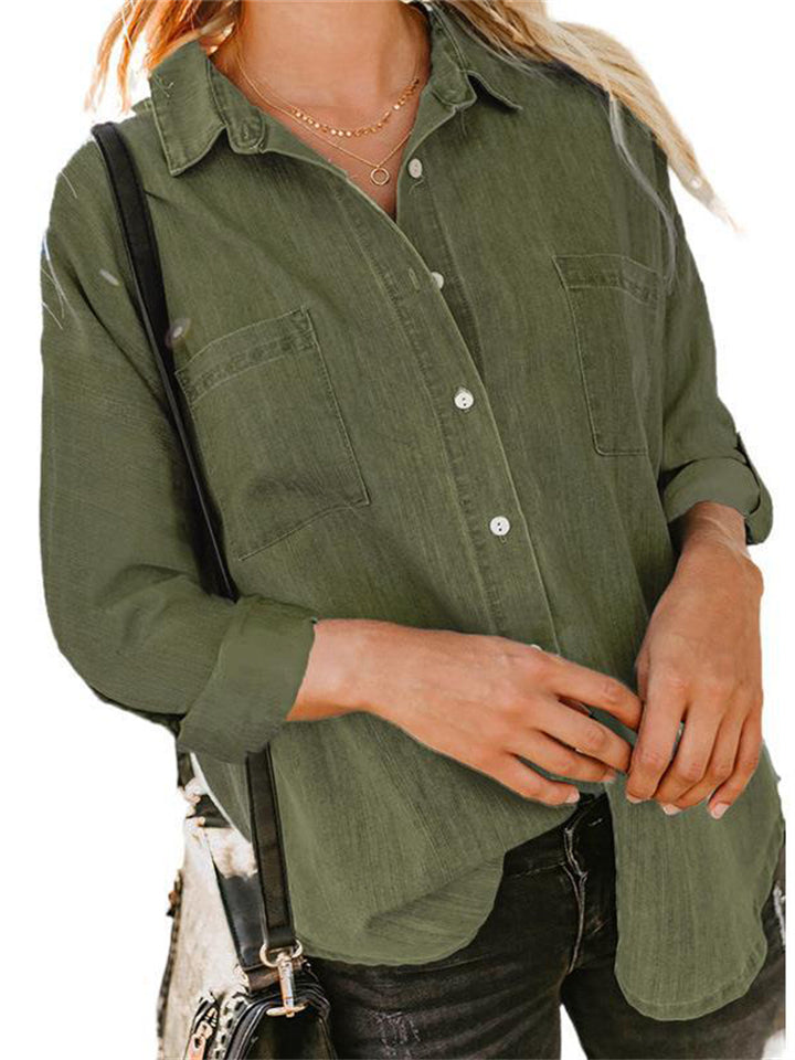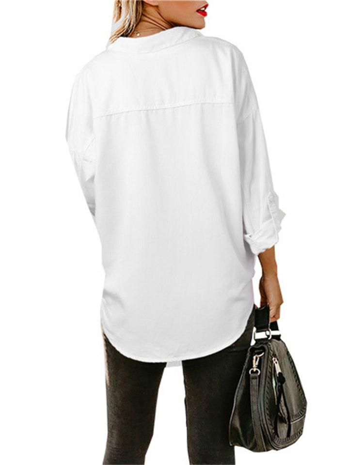 Spring Autumn New Extra Loose Pockets Roll-up Sleeves Women Shirts