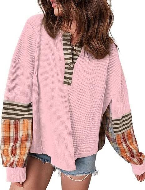 Bring cozy charm to your wardrobe with this laid-back top. The textured waffle knit feels as good as it looks, while a playful mix of patterns adds a stylish twist. A half placket lends a cool, casual vibe—perfect for effortless layering. With its relaxed fit, this piece pairs easily with jeans or leggings for an easygoing look with a touch of flair.