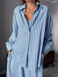 Whether it’s a lazy Sunday, a quiet work-from-home day, or just time to unwind, this striped three-piece set brings relaxed comfort and an effortlessly put-together feel—perfect for staying in while still feeling styled.