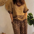 FASHION-FORWARD PATCHWORK DESIGN: The short sleeve top features a striking combination of leopard print and solid khaki panels, creating a unique visual appeal. This artistic patchwork craftsmanship ensures you stand out with contemporary style.