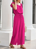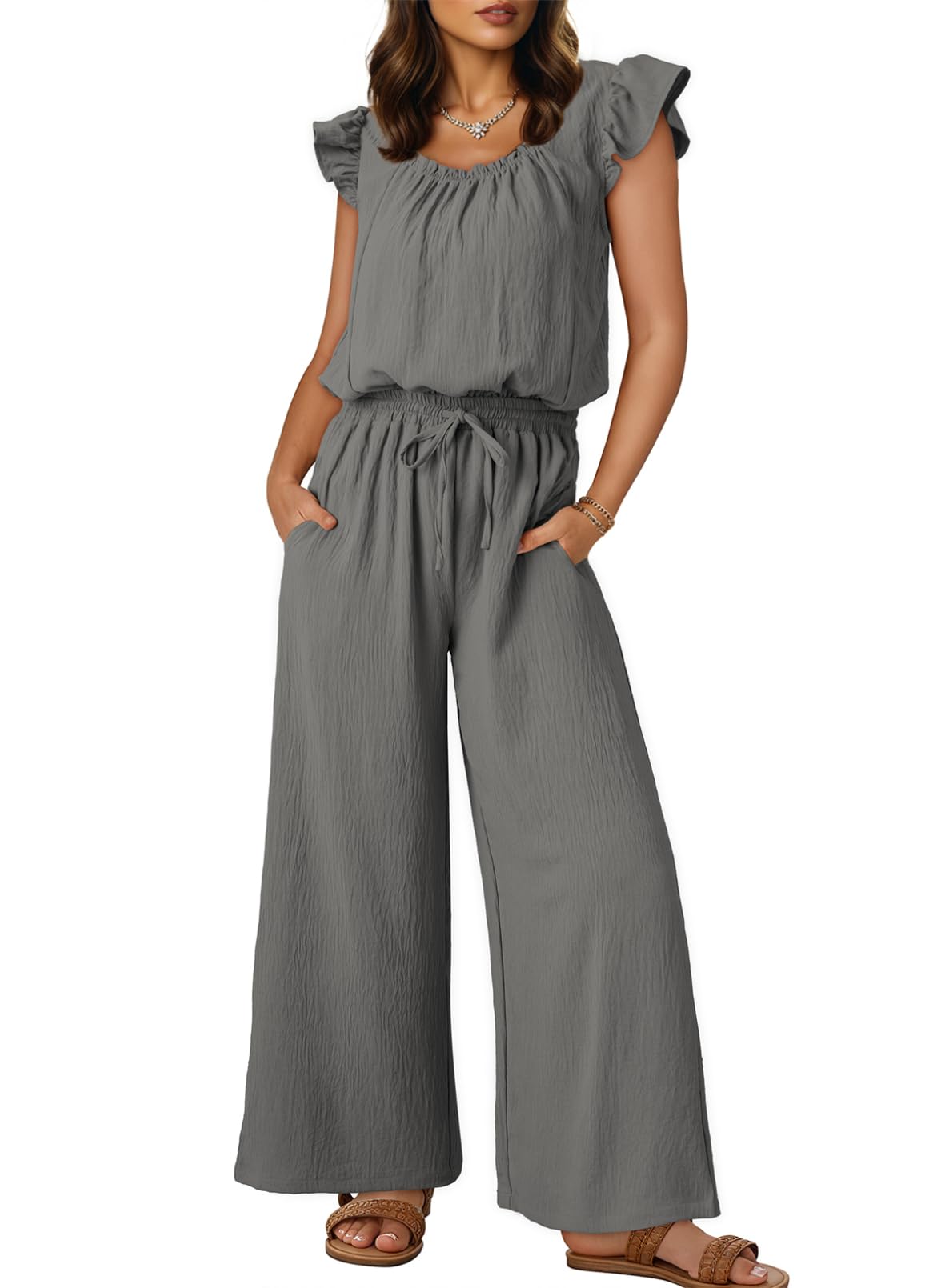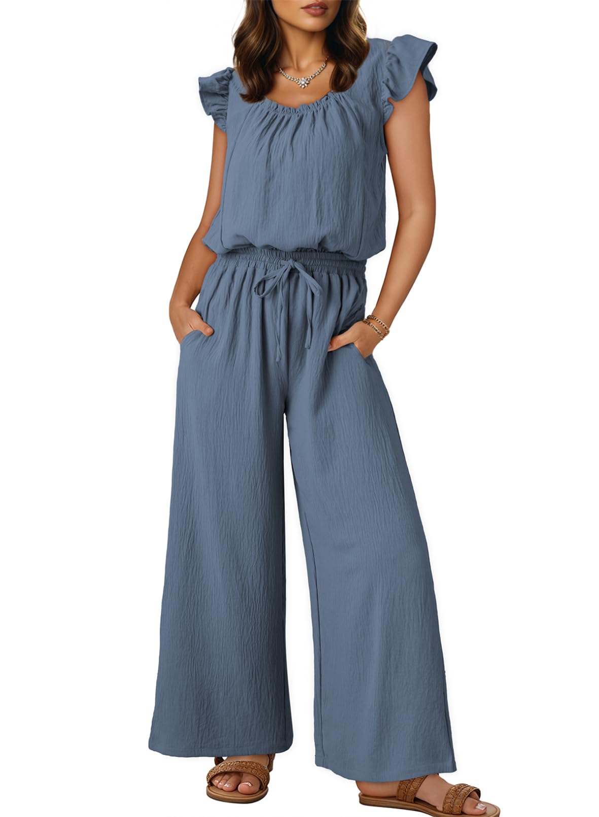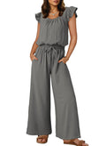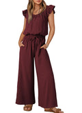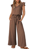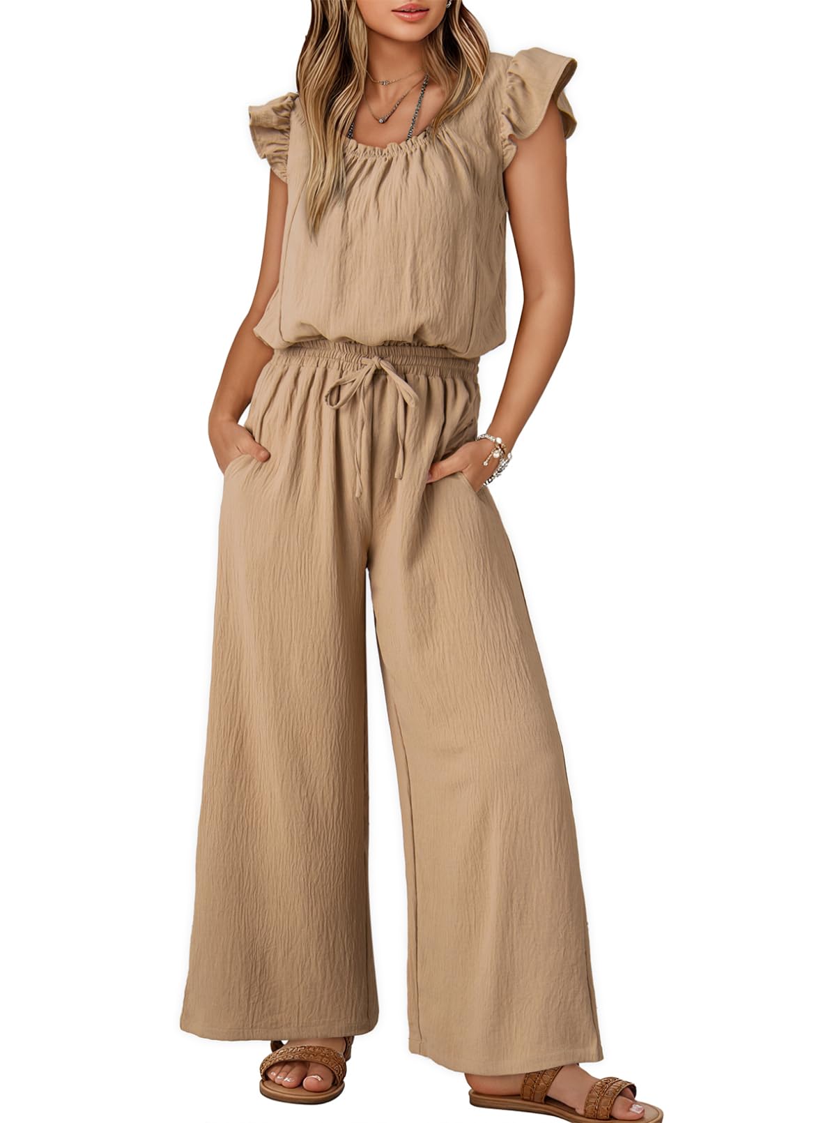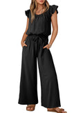 Summer Women's Summer Ruffle Sleeves Square Neck Drawstring Overalls with Pockets