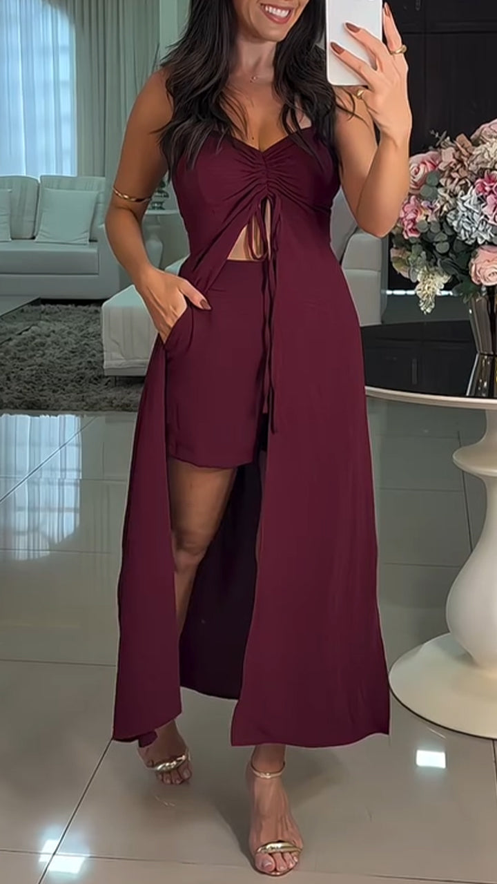 Suspender Slit Long Top And Shorts Casual Suit