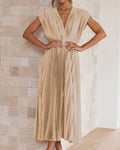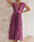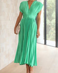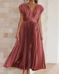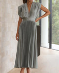 Timeless Elegance: Draped V-Neck Pleated Skirt Dress